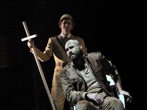 Sein musikalischer Ausdruck ist nach innen gerichtet. Aber Sabata kann auch Koloraturen schleudern, wenn er sich bei der Arie „Venti, turbini“ von seinem sadistischen Ziehvater Goffredo (etwas angestrengt: Christoph Waltle) emanzipiert. Insgesamt wünscht man sich jedoch ein bisschen mehr Strahlkraft vom darstellerisch ungemein präsenten Spanier, der in Freiburg unter anderem schon als Gott in Calderóns Mysterienspiel