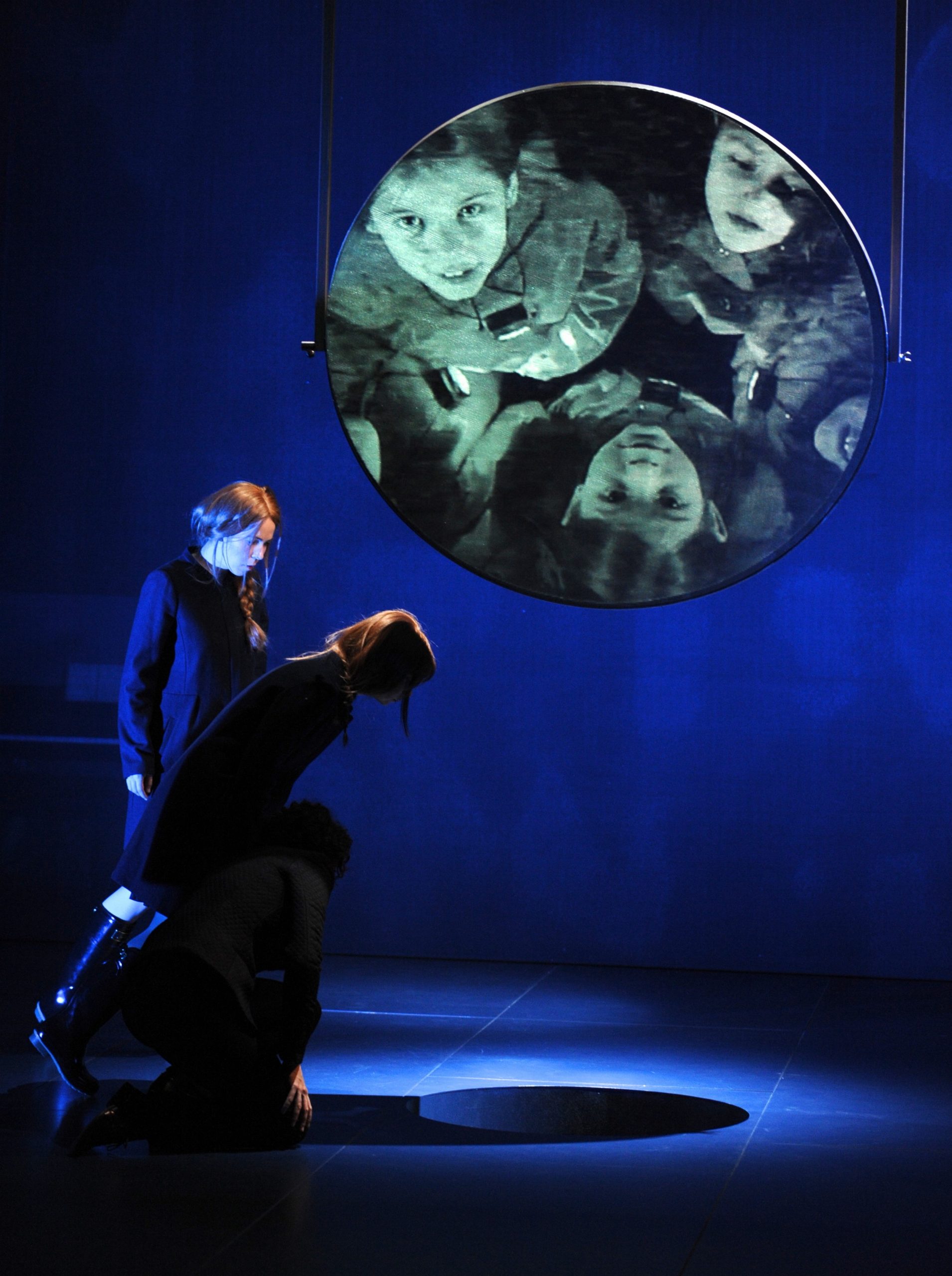 Wäre dies ein Märchen, dann müsste aus diesem Schacht der verwunschene Frosch springen, mitsamt dem goldenen Ball, der der Prinzessin aus Versehen in den Brunnen gefallen ist. Stattdessen sitzt Carina Braunschmidt an seinem Rand und schlägt ihre Highheels an die blaue Öffnung. Es klingt hohl und als sie einen ihrer Schuhe den Schacht hinabfallen lässt, klingt es nach großer Tiefe. „Du kannst gehen“, ruft sie ihm nach und zündet sich eine Zigarette an. Sie hängt ihren Gedanken nach und erzählt Erinnerungen an ihre Mutter.