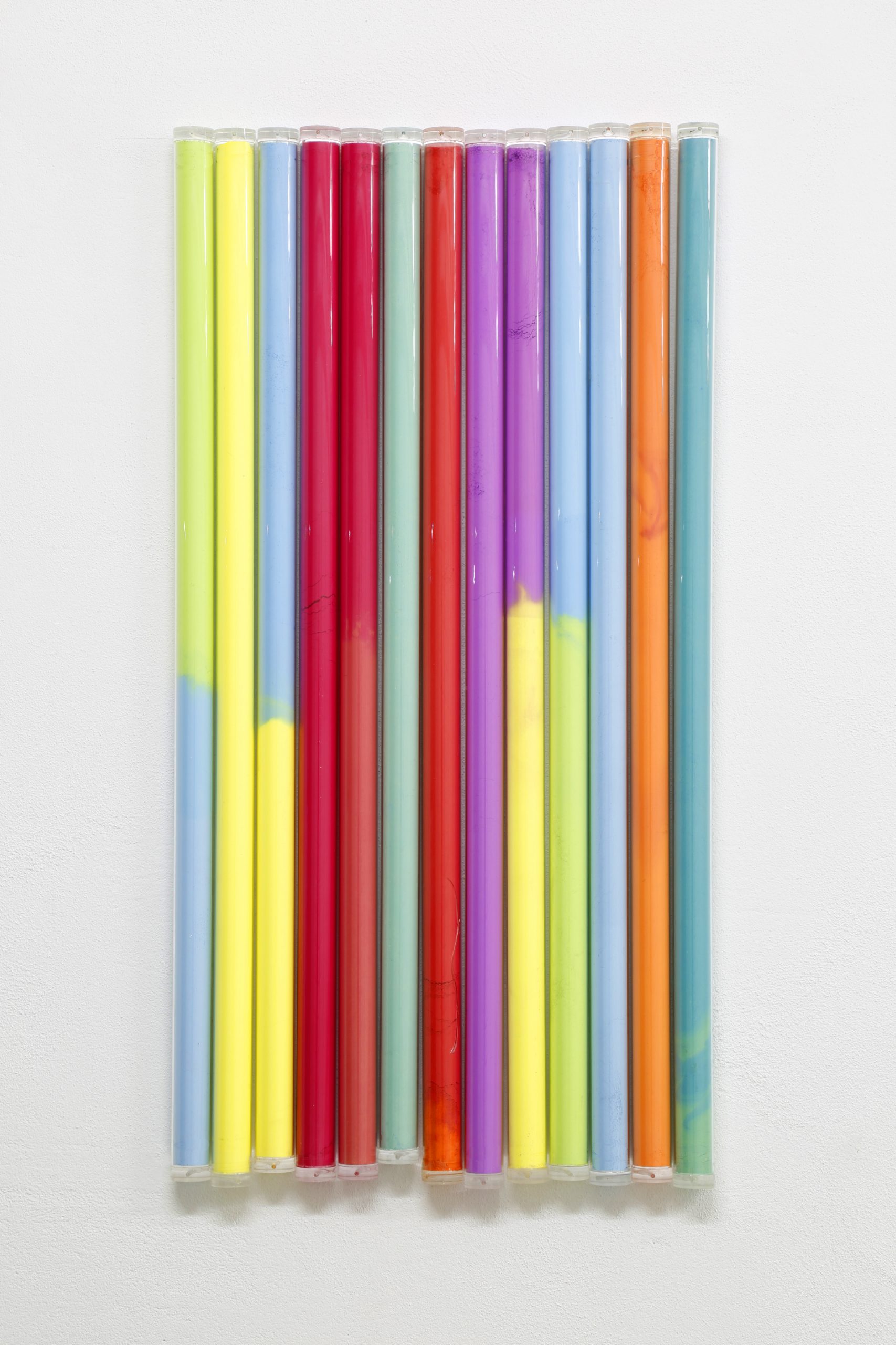 In der Galerie 1 sind zudem neue Kreidearbeiten ausgestellt. In dieser Werkserie setzt Seliger erstmals das erneute Abbrechen von Kreiden als Methode für den kreativen Prozess ein. Durch schnelle, intuitive Aktion auf homogenen Kreideoberflächen werden Zufall, Kraft und Tempo zu Gestaltungsgrössen. Mit dem Ziegelbruch experimentiert Seliger seit mehr als 20 Jahren und wendet die Technik nun auf andere Materialien an.