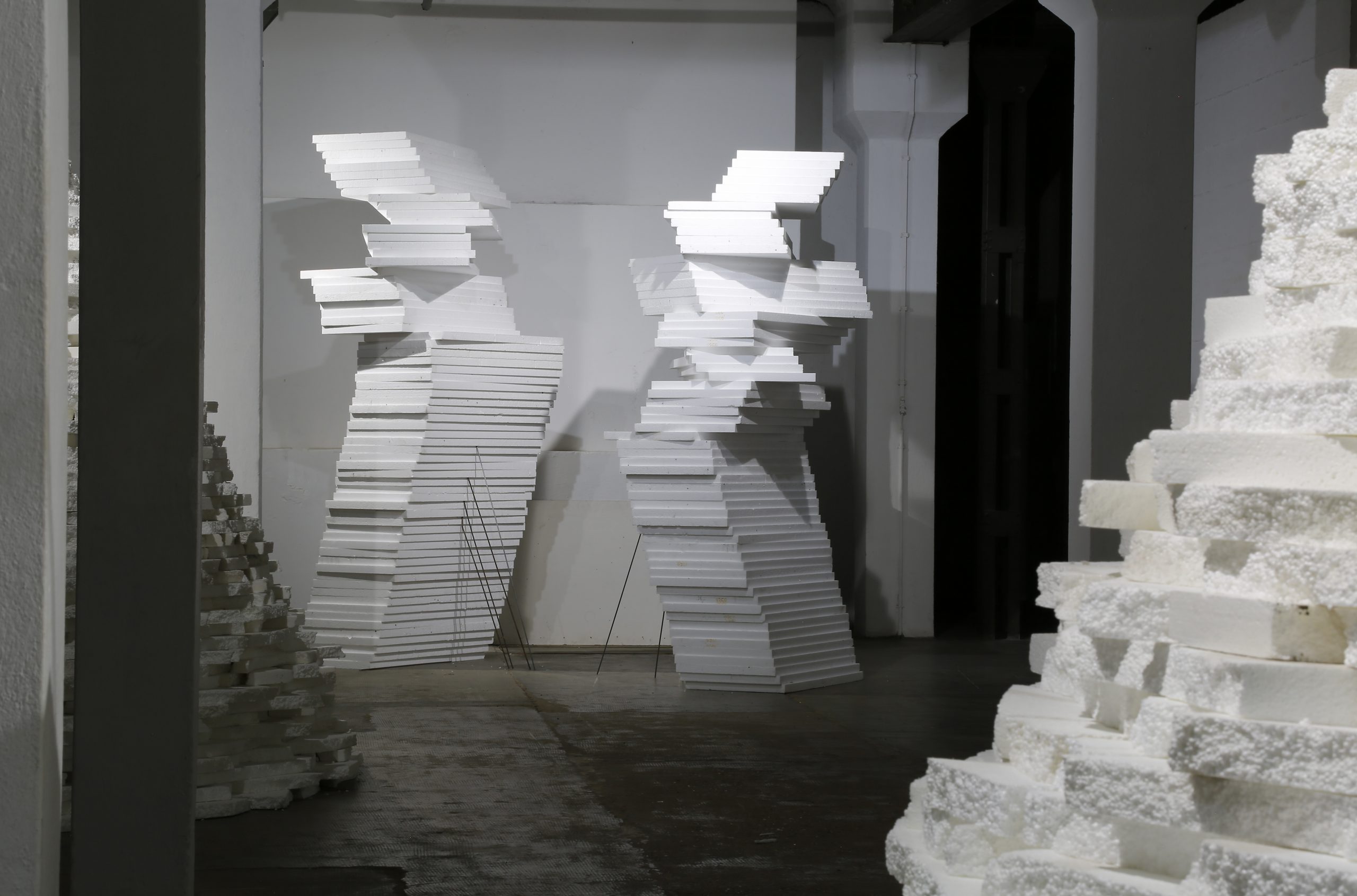 Für diese unverhoffte zweite Ausgabe seiner Ausstellung hat der Künstler Reiner Seliger in der Galerie 2 neue Raumskizzen geschaffen und präsentiert neue Arbeiten. Er setzt damit seine künstlerische Methode des Experimentierens mit Industriematerialien fort. Die Aktion als Gestaltungsfaktor, über den der Künstler nur bedingt Kontrolle hat, kommt hier zum Einsatz.