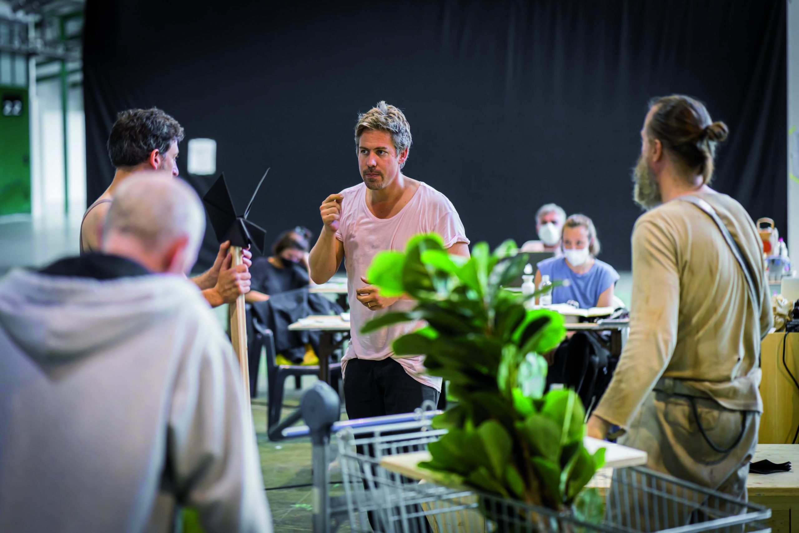 Benedikt von Peter: Eigentlich versuche ich immer, dass man so stark wie möglich und körperlich merkt, was die Musik von dem Stück will. Dass man da mitten rein versetzt wird. Ich glaube, ich bin schon die Post-Konwitschny-Generation, die sagt: „Versuche ein Tableau zu schaffen, in dem das Stück von sich erzählt“. Manchmal sind da größere Konstruktionen vonnöten, manchmal muss man dazu eine Geschichte erfinden, damit es den Leuten einfacher gemacht wird oder direkter. Und manchmal ist es mehr Storytelling, manchmal mehr Installation, je nachdem, was das Stück mitbringt. Das Stück soll auch von sich erzählen, so kräftig wie möglich. Auch die Energie der Musik sollte genutzt werden. Man sollte nicht irgendwas machen, und dann spielt da irgendwas im Orchestergraben: stattdessen die Power von diesem mehrdimensionalen Phänomen Musik auf die Rampe oder in den Körper kriegen.