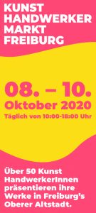 Der traditionsreiche Freiburger Kunsthandwerkermarkt findet in diesem Jahr vom 8. bis 10. Oktober in der oberen Altstadt statt. Seit mehr als 40 Jahren begrüßt und präsentiert der Kunsthandwerkermarkt regionale Austeller*innen, die im Rahmen dieser besonderen Veranstaltung ihre Kunst- und Handwerksstücke ausstellen und präsentieren. In diesem veranstaltungstechnisch heiklem Jahr hat es das neue Veranstaltungsteam des Kunsthandwerkermarkts Freiburg geschafft, ein bemerkenswertes Hygienekozept auf die Beine zu stellen, das es den Besucher*innen erlaubt, die Werke von rund 50 Kunsthandwerker*innen in den Straßen und Gassen zwischen Münster und Augustinerplatz kennenzulernen.