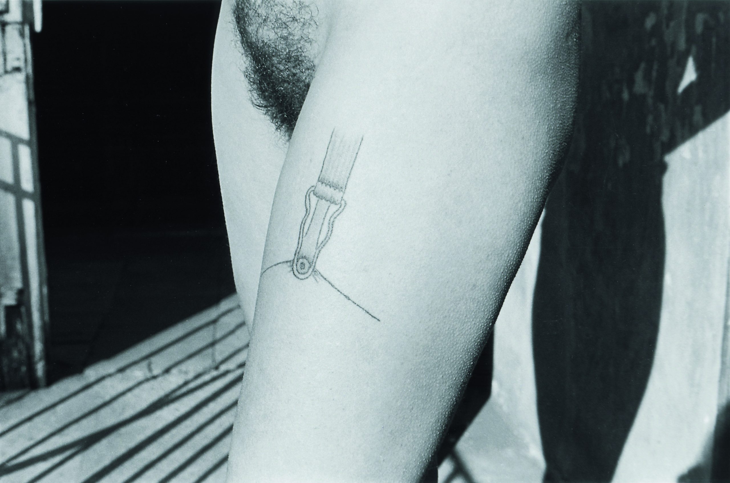 Die Frau auf dem Weg zu einem in jeder Hinsicht selbstbestimmten Leben ist das Grundthema von Exports Kunst, und in der Umsetzung ging die Künstlerin gern schockierend radikale Wege. Das zeigt sich auch in den großen Fotografien der „Body Sign Action“. 1970 ließ sich Valie Export in einer öffentlichen Aktion das Tattoo eines Strumpfbands in den Oberschenkel stechen. Damals galten Tätowierungen schon per se als zweifelhaft, und die Großaufnahmen des nackten Unterkörpers mit dem tätowierten Strumpfband dürften die Gemüter gründlich erhitzt haben. 50 Jahre später gelingt es der Künstlerin immer noch, mit „Body Sign Action“ ein Nachdenken anzuregen darüber, dass von jungen Frauen erwartet wird, sexy zu sein.