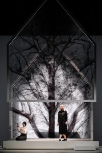 Von Beginn an ist zu spüren, dass die Geschichte der Madame Butterfly genannten Geisha Cio-Cio-San, die der amerikanische Marineleutnant Pinkerton zur Braut gewählt hat, in einer Katastrophe endet, auch wenn die Protagonistin noch gar nicht auf der Bühne ist. Das Tiny House, in dem ihr neues Leben mit dem Mann aus dem Westen beginnen soll, ist schwarz und hat keine Fenster. Ein verdorrter Baum hängt vom Schnürboden, von der Natur sind nur zwei Baumstümpfe geblieben (Ausstattung: Mariana Tirantte). Die Personen bewegen sie in Zeitlupe, auch das Haus rollt langsam, wie von Geisterhand bewegt, über die Bühne. Der argentinische Regisseur Mariano Pensotti verzichtet auf jedes Japanklischee. Er setzt auf eine klare Schwarzweiß-Ästhetik und vertraut auf eine symbolhafte Bildsprache. Vor allem Dirigent Giuliano Carella ist dafür verantwortlich, dass der Abend von Beginn an Sogwirkung entstehen lässt. Unter seiner Führung klingen die Streicher des Orchestre philharmonique de Strasbourg selbst in der trockenen Akustik des Opernhauses warm und homogen. Carella lässt Puccinis Musik Raum zum Atmen. Er sorgt für die Farben, die auf der Bühne bewusst fehlen und ergänzt die starken optischen Kontraste mit einer Vielzahl von Zwischentönen. Brigitta Kele ist als Madame Butterfly kein schüchternes fünfzehnjähriges Mädchen, sondern eine äußerst präsente Erscheinung, und das nicht nur wegen ihrer langen schwarzen Schleppe, die sie beim ersten Auftritt trägt. Mit ihrem farbenreichen Sopran erzählt sie von der seelischen Tiefe dieser Frau, die nach der Hochzeit drei Jahre wartet, bis der Treulose am Ende mit seiner amerikanischen Frau (Eugénie Joneau als Kate Pinkerton) zurückkehrt, um der von der Gesellschaft Verstoßenen auch noch das gemeinsame Kind zu entreißen. Leonardo Capalbo ist ein Pinkerton mit Tenorschmelz und guter Linienführung. Tassis Christoyannis verleiht Sharpless, dem amerikanischen Konsul, Wärme und Empathie