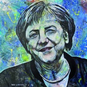 Als der Rheinländer Christoph Kossmann-Hohls (*1947) vor dem Eintritt ins Ruhealter stand, wollte er eine neue Tätigkeit beginnen. Die Wahl fiel auf die Acrylmalerei. Über Kurse und stetes Malen entwickelte Kossmann seinen Stil. Die Technik besteht aus einer Colorierung der Leinwand mit mehrschichtigen Farbauftragungen, auf die der Maler schließlich seine Portraits in schwarzer und weißer Farbe malt. Dass Herr Kossmann manchmal selbst überrascht wird, welche prominente Person sich aus den Farbschichten schält kann passieren. Mittlerweile hat der Künstler über 210 Portraits gemalt. Teils arbeitet er ganz spontan, ganz im Modus des gemütlichen Rentners an seiner Kunst. Sah er sich eine Sendung im Fernsehen an, nutzte er die Werbepausen, um seine Bilder weiter zu verfeinern.