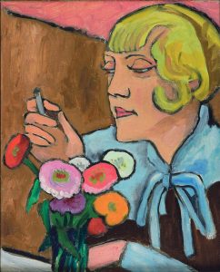All das liefert für Kathrin Baumstark den Beweis dafür, dass sich Gabriele Münter nicht allein auf ihre weibliche Intuition verlassen hat, sondern als Künstlerin stets sehr strukturiert vorgegangen ist. Bei ihrem Bild „Mutter mit schlafendem Kind“ von 1934, das Ruhe ausstrahlt, setzte sie bewusst Umrisslinien ein. „Röschen“ von 1926 verschreibt sich der Neuen Sachlichkeit: Eine schwarz gekleidete Frau hat eine kleine Katze auf der Schulter. Ihre Augen sind genauso intensiv blau wie die des Tieres. Allein diese beiden Arbeiten strafen all jene Lügen, die behaupten, Gabriele Münter wäre nach ihrer Trennung von Wassily Kandinsky als Kreative in der Bedeutungslosigkeit versunken.