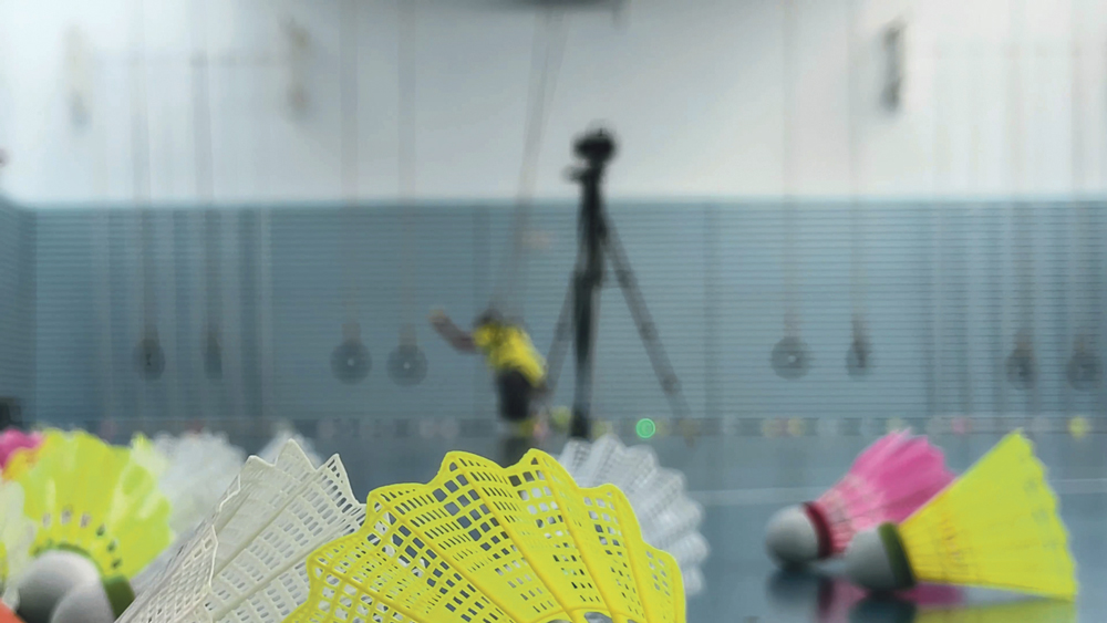Es ist eine schöne Vorstellung, dass Thomas Liu Le Lanns Video „Gym“ bis gut eine Woche vor der Eröffnung seiner Ausstellung im Freiburger E-Werk bei der Olympiade und bei den Paralympischen Spielen im Maison Suisse in Paris gezeigt wurde. Der Welschschweizer hatte zusammen mit Laure Marville vom Kanton Genf eine Carte Blanche bekommen. Und was nun in der Galerie für Gegenwartskunst auf einem Bildschirm am Boden zu sehen ist, könnte auch eine zeitgenössische Variante von Herman Melvilles Schreiber Bartleby sein. Nur, dass sich hier niemand der Bürotätigkeit verweigert, es geht stattdessen um Badminton, und dass wir es gleich mit einer ganzen Gruppe zu tun haben. Dabei sind die Männer und Frauen in Thomas Liu Le Lanns Arbeit keine eigentlichen Verweigerer. Aber ihre Kleidung, die aus einer Art Unisex-Lagenlook besteht mit Schürzen und signalfarbenen Oberteilen, ist so wenig für jede Art von Sport geeignet und ihre Vorkenntnisse so rudimentär, dass es auf das Gleiche hinausläuft.