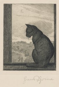 Im Freiburger Augustinermuseum geht man mit dem Vorwurf konstruktiv um. Zwar muss man ganz durch die von Felix Reuße, Leiter der Graphischen Sammlung, kuratierten Schau „Hans Thoma. Zwischen Poesie und Wirklichkeit“ hindurch, aber dann hängt da der Zyklus „1898“ von Marcel van Eeden, mitsamt den Zitaten, die die Diskussion entfachten. So schreibt Thoma 1905 etwa an Cosima Wagner im Hinblick auf Max Liebermann, dass Juden selbst noch aus dem Antisemitismus Nutzen zu ziehen wüssten. Van Eeden hat seine Auseinandersetzung mit Hans Thoma weitergeführt und im heutigen Bayreuth Wege im Gummidruck festgehalten, die der Maler eingeschlagen haben könnte, um zu Cosima Wagner zu kommen. Bei großer weltanschaulicher Distanz, treffen sich van Eeden und Thoma in ihrer Faszination für die Linie und die Druckgrafik. Dass diese in Reußes Ausstellung eine bedeutende Rolle einnimmt, versteht sich fast von selbst. Von einigen Arbeiten Thomas gibt es mehrere Varianten, die mit verschiedenen Hell-Dunkel-Kontrasten experimentieren.