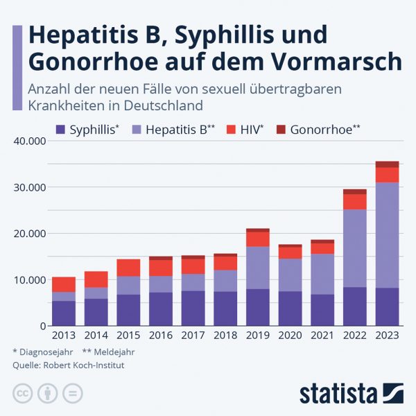 Laut dem Europäischen Zentrum für die Prävention und die Kontrolle von Krankheiten (ECDC) steigen die Fallzahlen sexuell übertragbarer Krankheiten in vielen europäischen Ländern signifikant an, darunter auch Deutschland. Besonders Syphilis, Gonorrhoe und Chlamydien sind wieder auf dem Vormarsch.