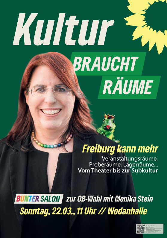 Beim Bunten Salon „Kultur braucht Räume“ diskutieren Vertreter*innen der lokalen Kulturszene gemeinsam mit der Oberbürgermeisterkandidatin Monika Stein über aktuelle Herausforderungen und konkrete Perspektiven.