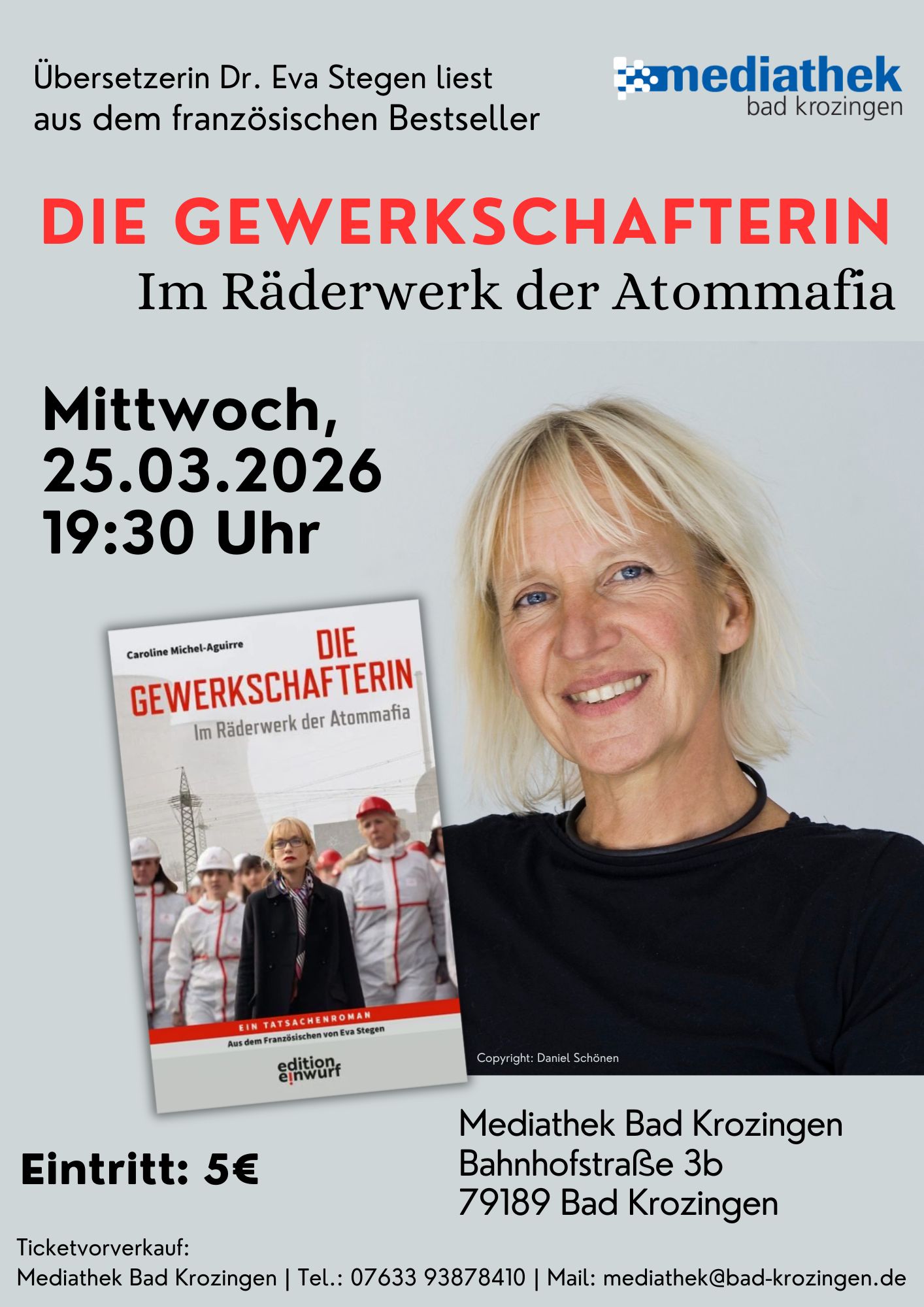 Eine wahre Geschichte über Korruption, Justizirrtum und den Mut einer Frau — Im Räderwerk der Atommafia. Übersetzerin Dr. Eva Stegen liest aus dem französischen Bestseller.